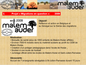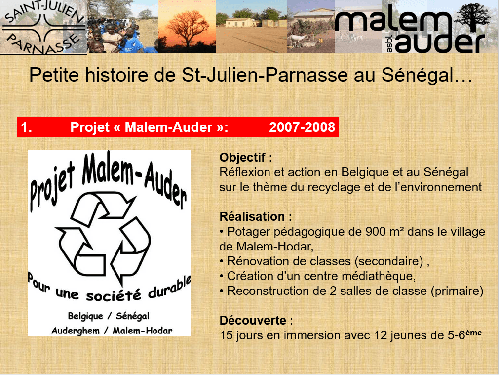 Saint-Julien et le Sénégal : une belle histoire 4 mars 2017 beas Depuis 2007, une belle et longue histoire lie notre Institut avec une zone défavorisée du centre du Sénégal, le département de Malem-Hodar. Quelques images pour retracer ce parcours….